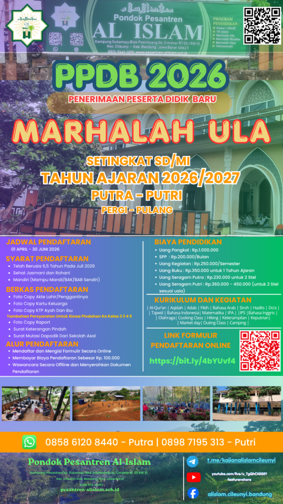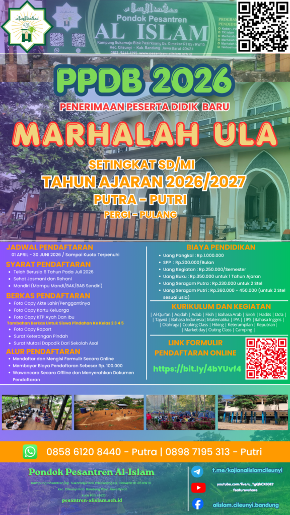 PPDB SD 2026 PENERIMAAN PESERTA DIDIK BARU DAN PINDAHAN TAHUN AJARAN 2026/2027M. TINGKAT SD/MI/SEDERAJAT PUTRA/PUTRI PERGI - PULANG insyaAllah MULAI BELAJAR JULI 2026M. pendaftaran mulai April 2026 s/d Juli 2026atau sampai dengan kuota terpenuhi DOWNLOAD PANDUAN PSB LINK DAFTAR/FORMULIR ONLINE